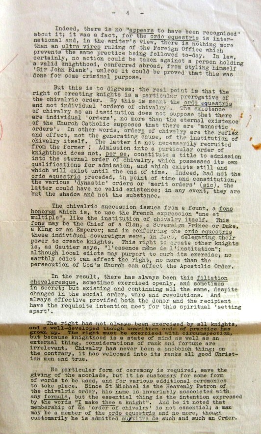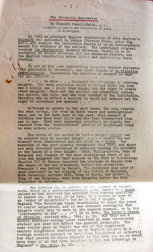 The archives of the Abbey-Principality contain this interesting paper on how knights are created, and indeed how they may style themselves, by the late Professor Vincent Powell-Smith (1934-97).