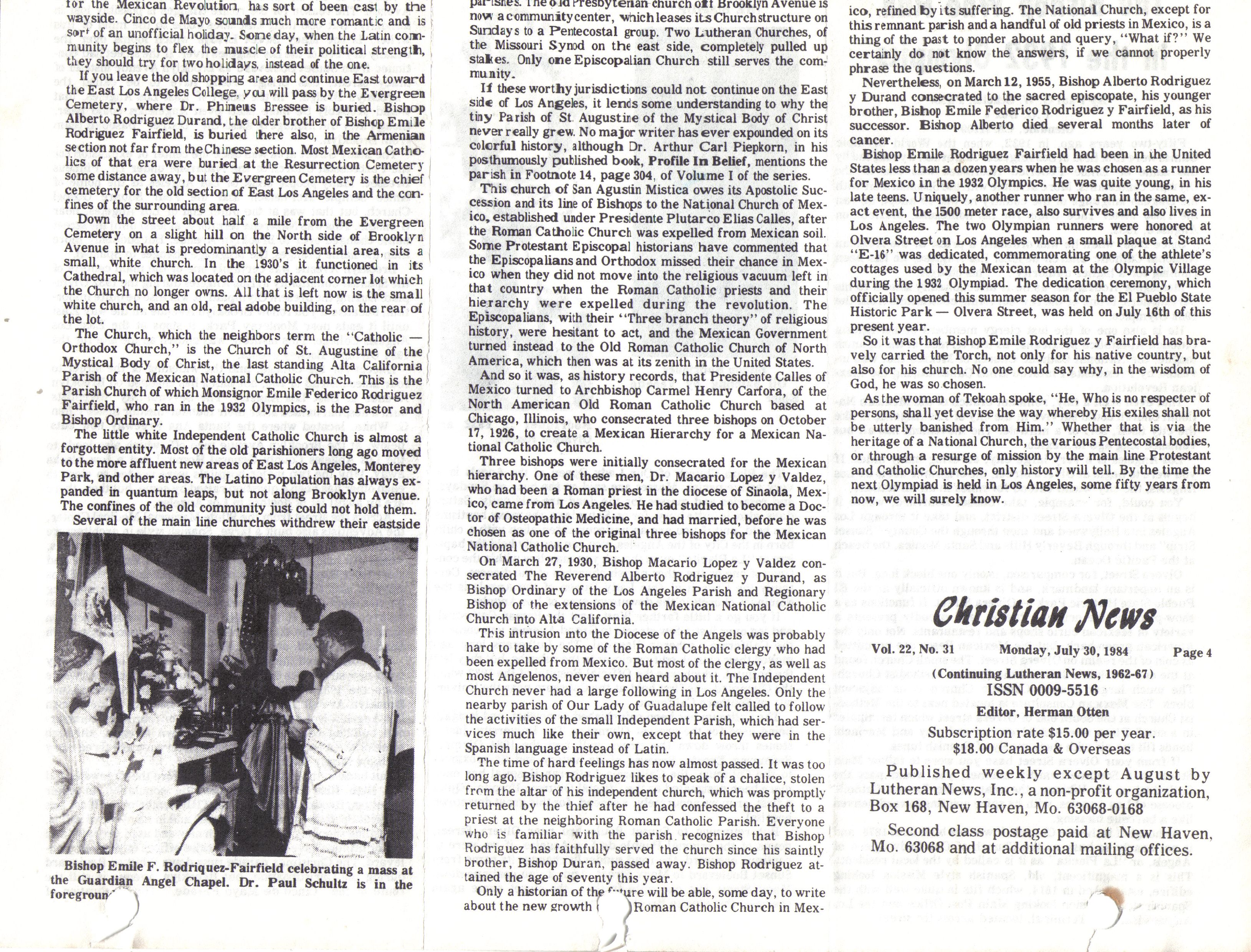 As a postscript to our recent profile of Archbishop Emile Rodriguez y Fairfield, we are pleased to reproduce this 1984 article about him by Archbishop Paul Schultz. Click the article images below to enlarge them to reading size.