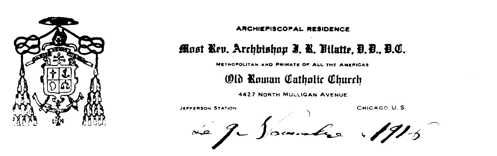 The terms Old Catholic and Old Roman Catholic have been used interchangeably to describe Old Catholicism in the United States of America and in Great Britain, referring to the position on faith defined by the 1889 Declaration of Utrecht. Prince-Abbot Joseph III described his church using both terms. Here is a letterhead from 1915 in which he refers to his office as Metropolitan and Primate of all the Americas in the Old Roman Catholic Church: