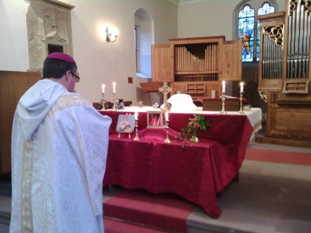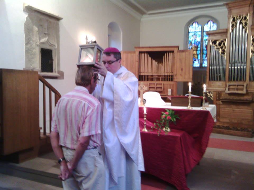 The Mass of St Louis and the Holy Thorn has been celebrated today by Mgr. Raphael Steck, KOCT, for the Mission Gallicane d’Alsace, a chartered community of the Abbey-Principality. The Mass was celebrated in a strong and prayerful spirit and many graces were received.