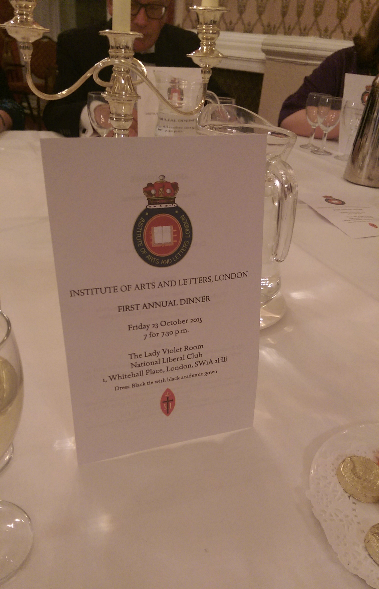 The Prince-Abbot, President of the Institute of Arts and Letters, London, presided at the Institute’s Annual Dinner at the National Liberal Club on October 23, at which several Fellows and invited guests were present. The assembled company, attired in evening dress and academic gowns, enjoyed a fine dinner followed by a most entertaining speech from Mr Jonathan Marten FIAL(Lond) who spoke of his extensive travels as a music examiner.