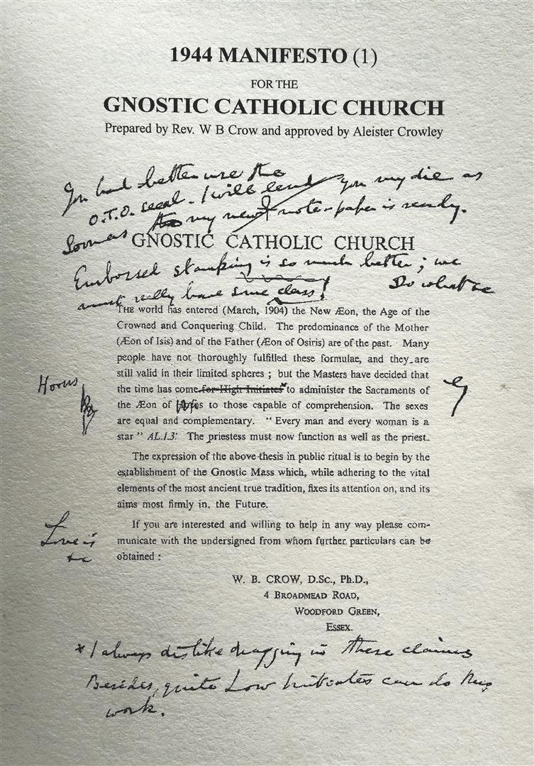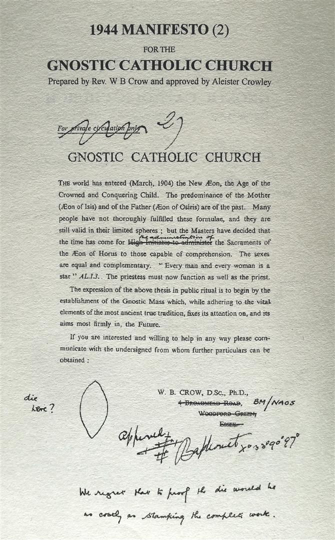 In the same year, Dr Crow issued a Manifesto for Crowley’s E.G.C. inviting any who were interested to contact him for further information.