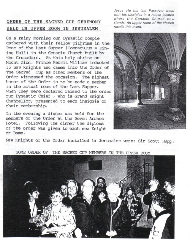 From the archives: Ceremony of the Order of the Sacred Cup in Jerusalem On April 8, 2023 By johnkerseyIn News, Royal Belarus From a past edition of The Excubitor comes this account of one of a number of investitures of the Order of the Sacred Cup held in Jerusalem in the Cenacle Church, the location of the Last Supper. Related