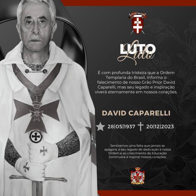 Bishop David Caparelli, who was Representative Bishop in Brazil for the Apostolic Episcopal Church, has died at the age of 86. Bishop Caparelli was responsible for the Ordo Templum Domini and undertook much work to keep the Templar tradition alive, publishing a number of books on its history.
