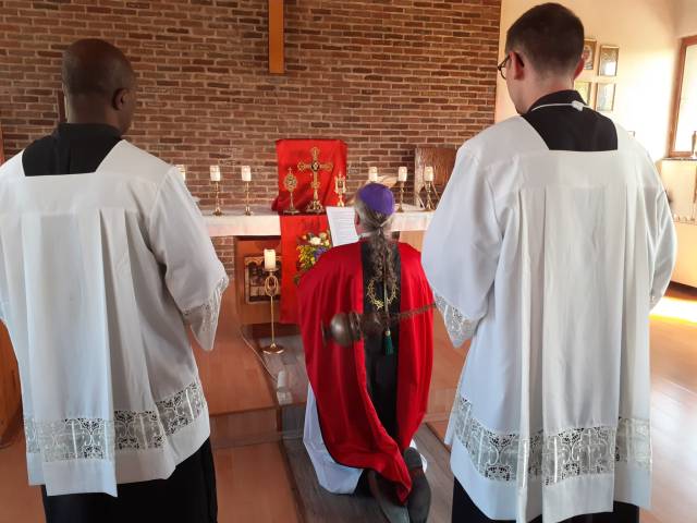 Mgr. Raphaël-Magnoald Steck GCCE celebrated the Mass for the Solemnity of the Precious Blood and the commemoration of St. Joseph René Vilatte (Prince-Abbot Joseph III of San Luigi) at the Centre Misericorde in Lingolsheim, France. The Mass concluded with a solemn blessing of a relic of the True Cross.