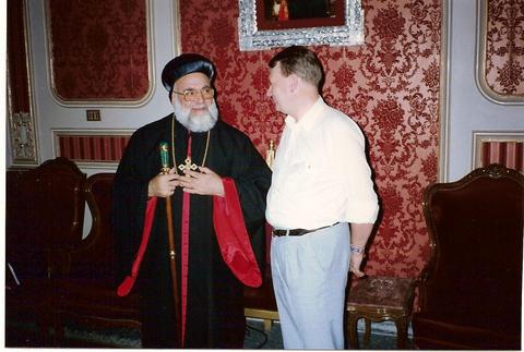 The Syrian Orthodox Patriarch, H.H. Ignatius Zakka I Iwas, in conversation with Archbishop Professor Bertil Persson.