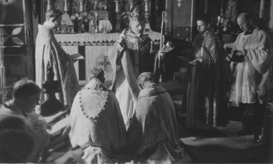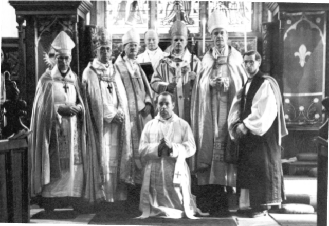 Conditional consecration of John Sebastian Marlow Ward as Archbishop of Olivet in the Catholicate of the West by Mar Georgius assisted by other prelates; Abbey Church of Christ the King, Barnet, 25 August 1945.