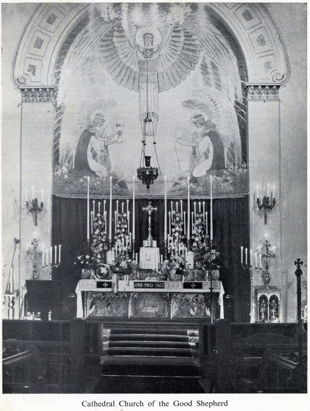The altar of the former Cathedral Church of the Good Shepherd of the Ancient Catholic Church, Lower Sloane Street, Chelsea; one of the places of worship affiliated to the Catholicate of the West.
