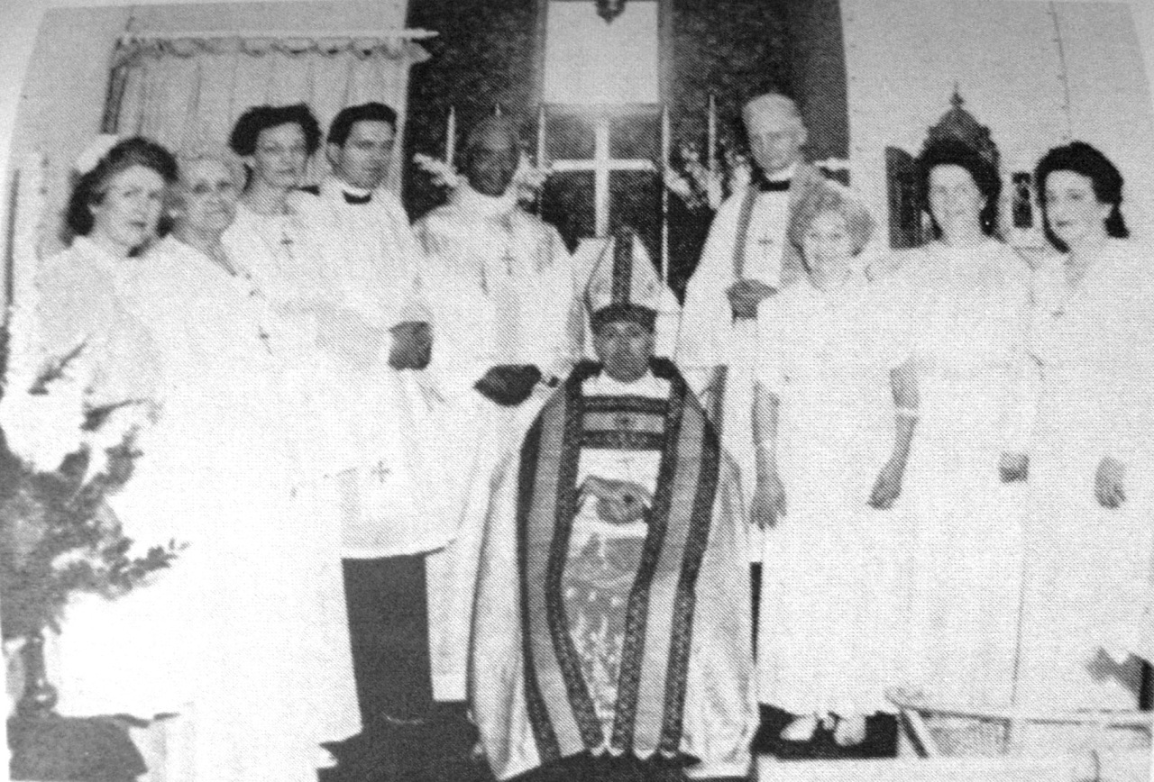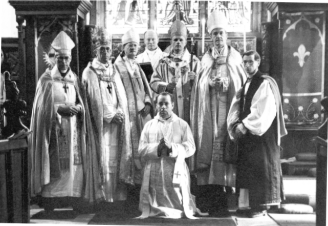 Consecration of Mar David (Maxey) by Mar Georgius assisted by Mar John (J.S.M. Ward), Mar Leofric (C.L. Saul), Mar John (J. Syer), Mar Francis (F.E. Langhelt), and Mar Benignus (R.K. Hurgon), Abbey Church of Christ the King, Barnet, 6 June 1946.