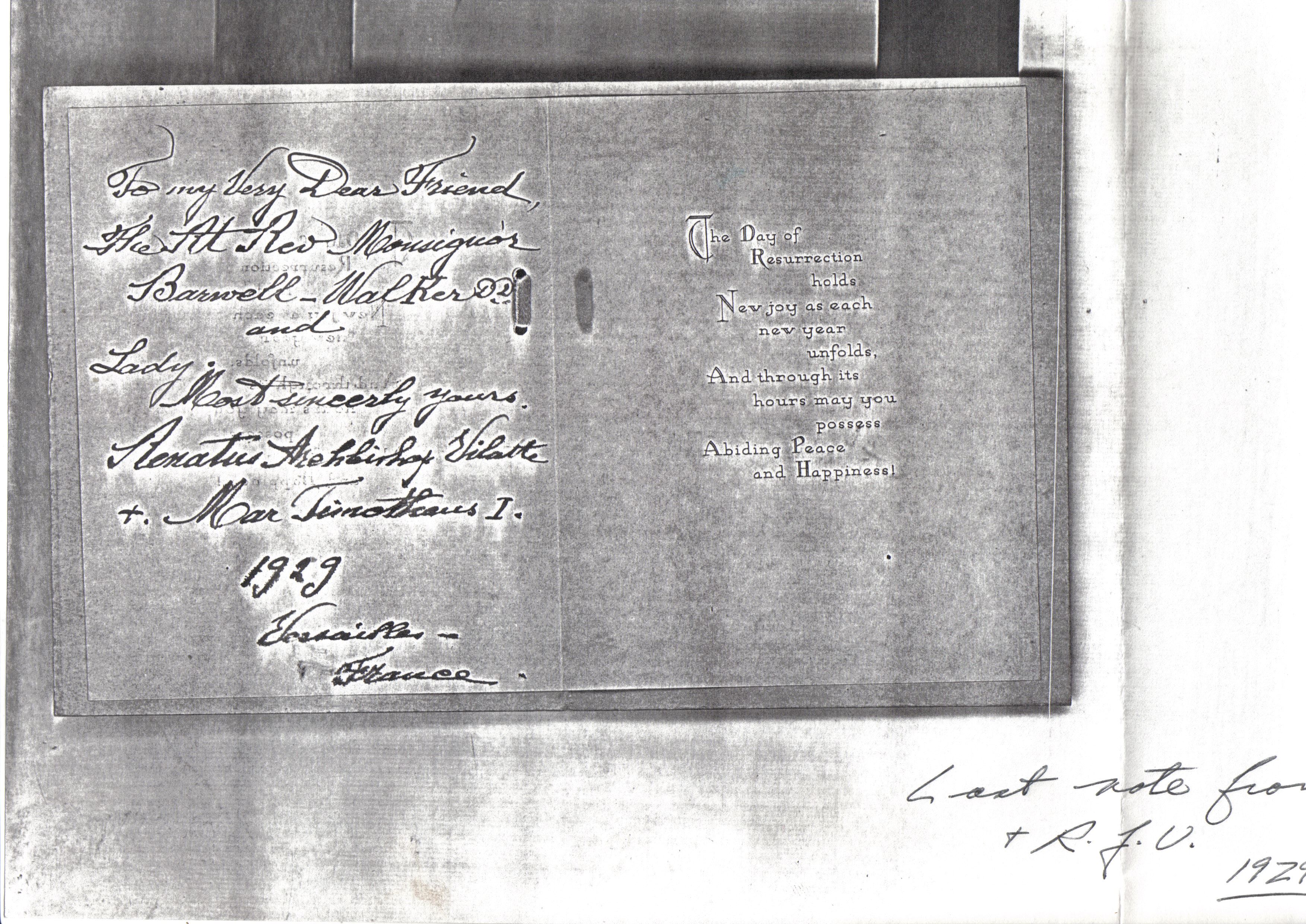 >>Easter card from Prince-Abbot Joseph III to Mgr. Barwell-Walker, 1929