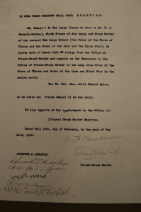 Royal Patron of the Orders of the Crown of Thorns and of the Lion and the Black Cross